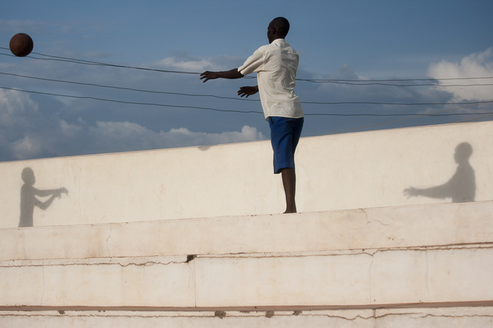 Camille a travaillé au Soudan du sud de juillet 2012 à février 2014. Cette photo a été prise le 5 avril 2013. On est à Juba, la capitale, plus précisément au stade de basket, où une équipe de joueurs handicapés, essentiellement composée d’anciens soldats, s’entraîne.