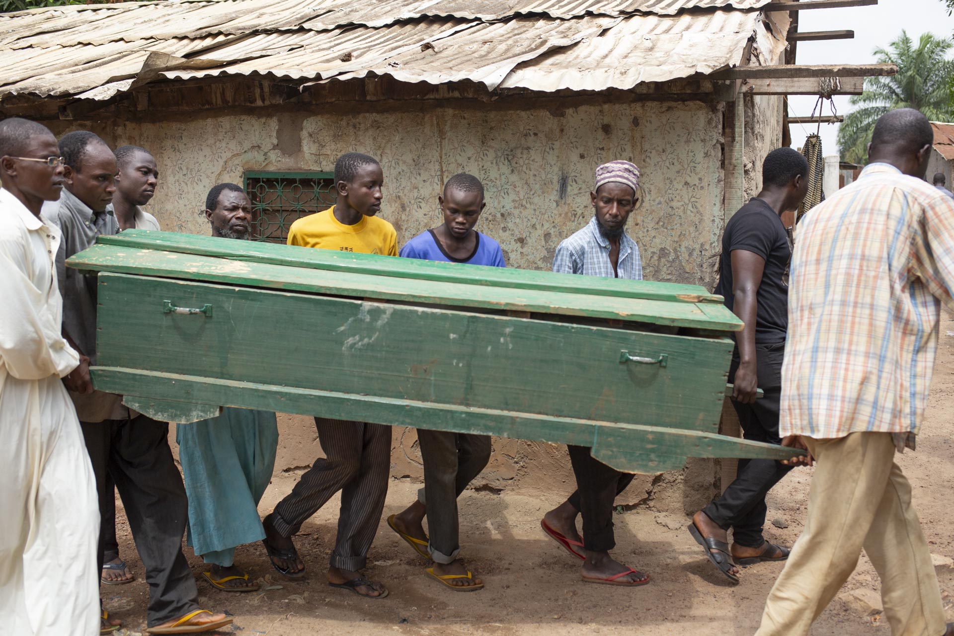 Cette photo, prise en Centrafrique, était exposée à Angers l’an dernier. Un jour, alors que Maryvonne, la mère de Camille, était sur place, elle a vu un groupe de femmes africaines entrer dans la salle. À un moment, l’une de ces femmes s’est approchée d’elle et lui a dit en montrant cette photo : « Ce cercueil, c’est celui de mon oncle. Merci de lui rendre cet hommage ». Cette femme avait trouvé exil en France. Elle avait rejoint un foyer de migrants et avait eu connaissance par la presse locale de cette exposition sur la Centrafrique à Angers. En visitant l’exposition, elle avait reconnu cette scène, le cercueil, et sa famille qui le portait. Voir cette image l’avait bouleversée. Maryvonne avait été très émue qu’une photo de sa fille ait pu avoir cet impact, ce rôle, cette histoire si singulière.